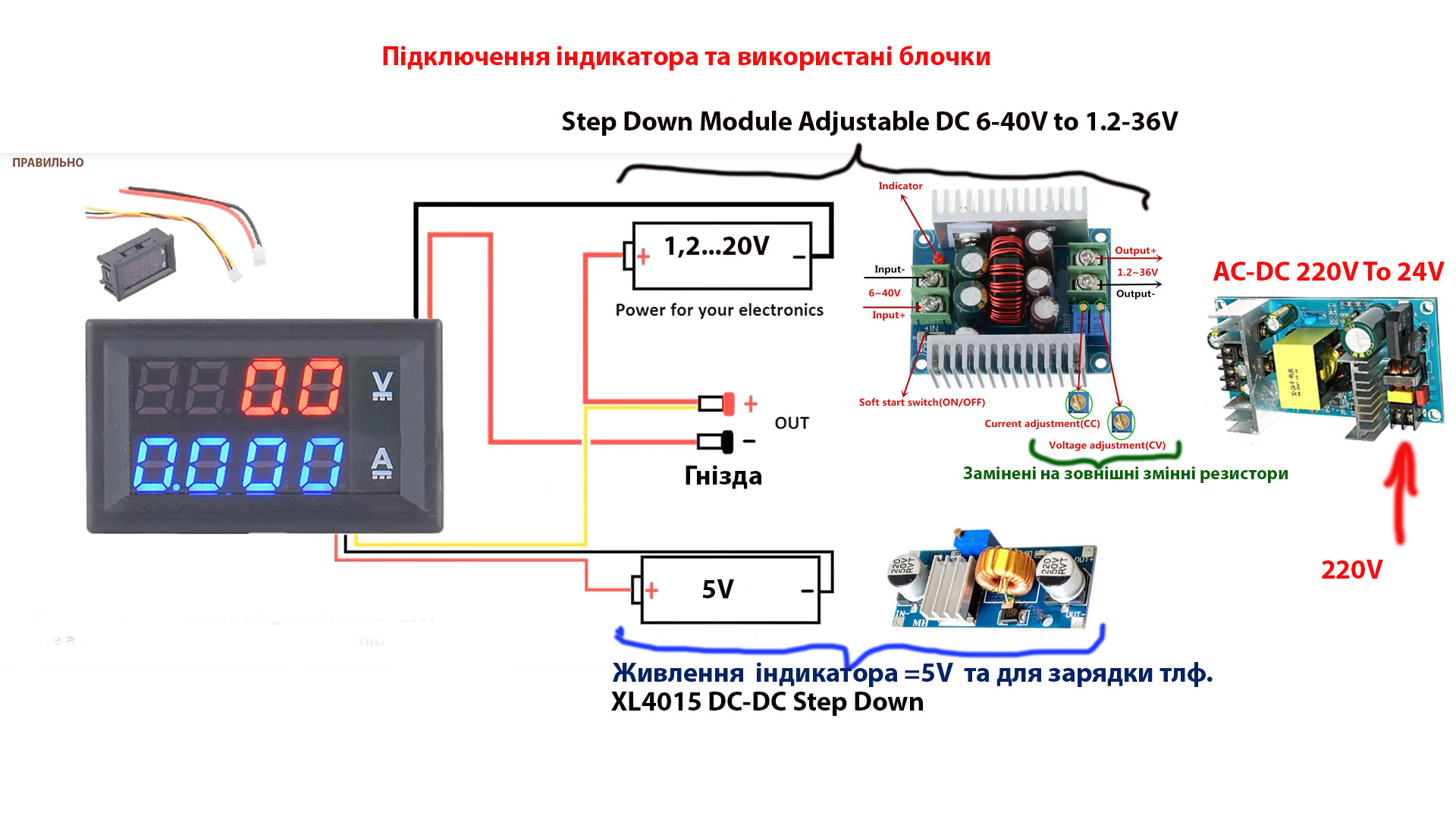 Блок живлення може регулювати не тільки напругу від 1,3...20V, але і обмежувати струм (що дозволяє заряджати акумулятори від безперебійників та від легкових авто).
